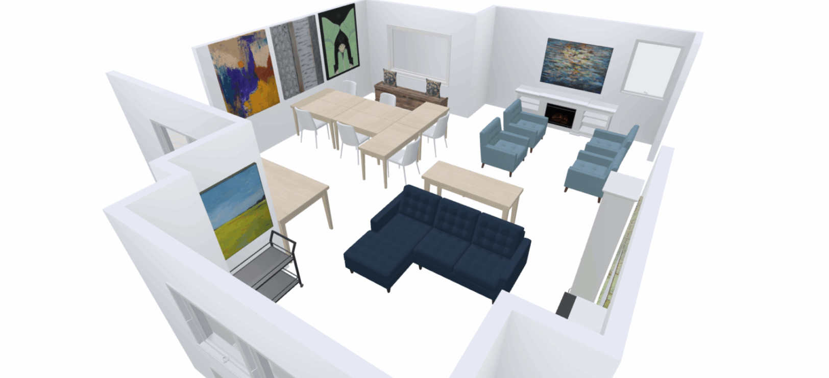 Crafting space in dining room, where six additional people can work